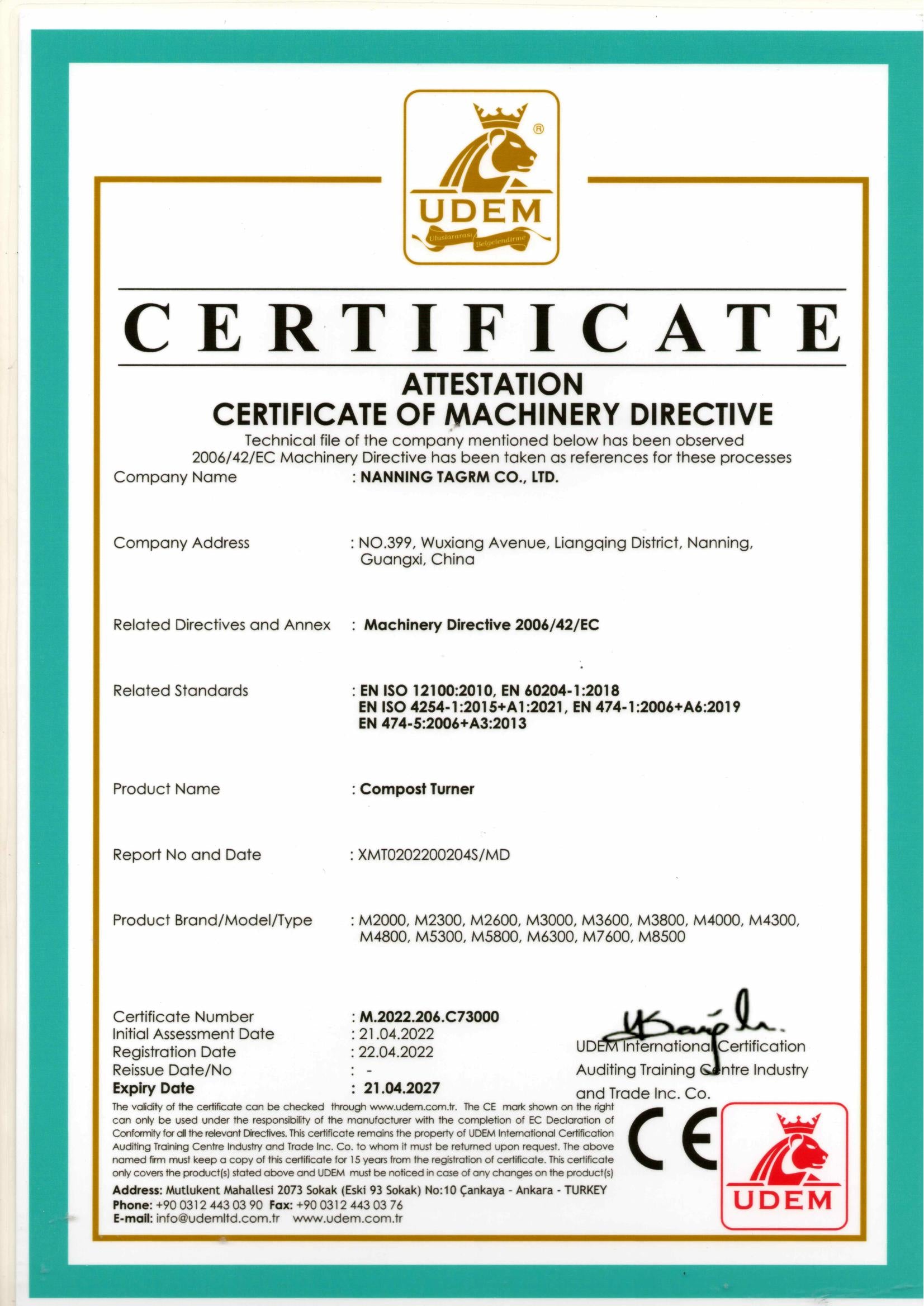 M2600 Crawler Compost Turner, Small Composting Machine for Animal Manure & Agricultural Waste, 2.6m Wide, 790m³/h
