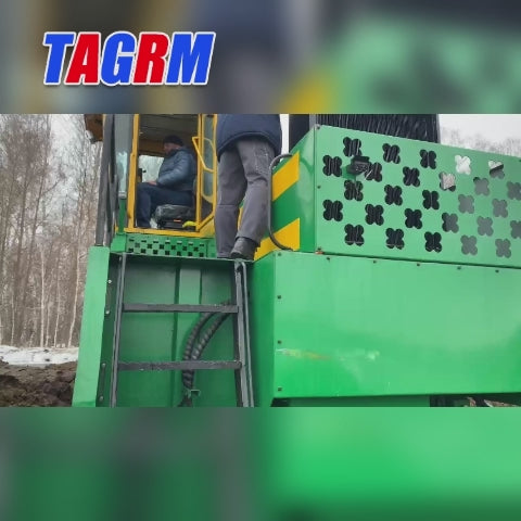 The M5000 compost turner from TAGRM is a new device that expands on the M4800. It features a 240Kw diesel engine, working width is 5 meters, and a working efficiency of 2600 cubic meters per hour. A new hydraulic system is also used, which improves stability and longevity while staying current with technological trends.