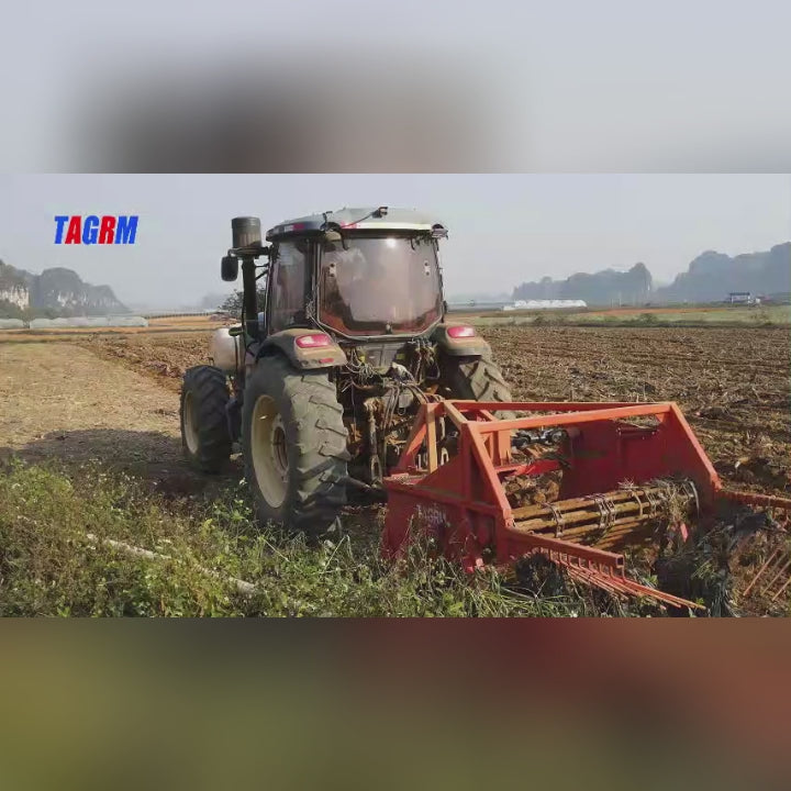 TAGRM's 4U-2 cassava harvester is a unique agricultural machinery used for excavating cassava from the soil. It conveys cassava from beneath the soil to the machine's upper side using a chain conveyor, while separating and screening soil, sediment, and other impurities.